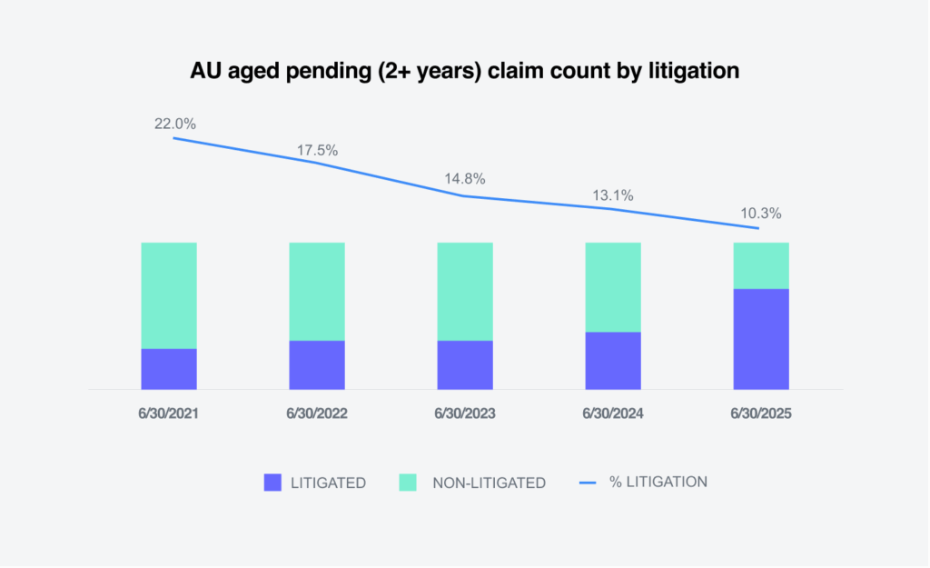 Aged pending claims are declining year over year, with a healthy balance of litigated to non-litigated claims.