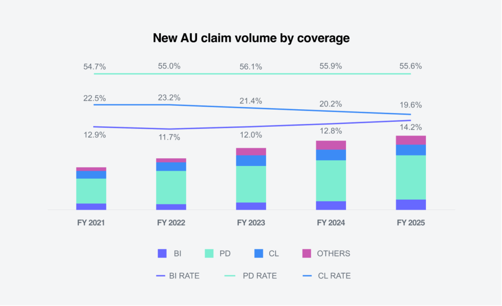The rate of new bodily injury claims was 14.2% for FY 2025 versus 12.8% in FY 2024 and has increased each year for the past four years. While transportation claims continued to have the highest new bodily injury claim rate at 19%, carrier claims represented the largest percentage increase of 3% by increasing to 15.6%.